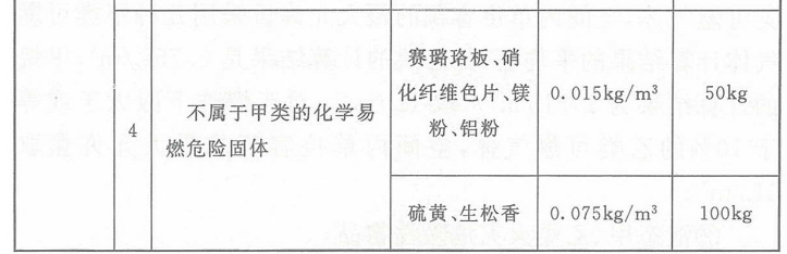 对于金属钾、金属钠,黄磷、赤磷、赛璐珞板等固态甲、乙类火灾危险性物品和镁粉、铝粉等乙类火灾危险性物品的单位容积的最大允许量,参照了国外有关消防法规的规定。