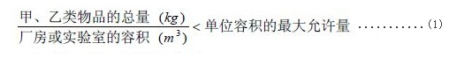 单位容积的最大允许量是实验室或非甲、乙类厂房内使用甲、乙类火灾危险性物品的两个控制指标之一。实验室或非甲、乙类厂房内使用甲、乙类火灾危险性物品的总量同其室内容积之比应小于此值。即: