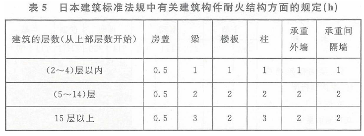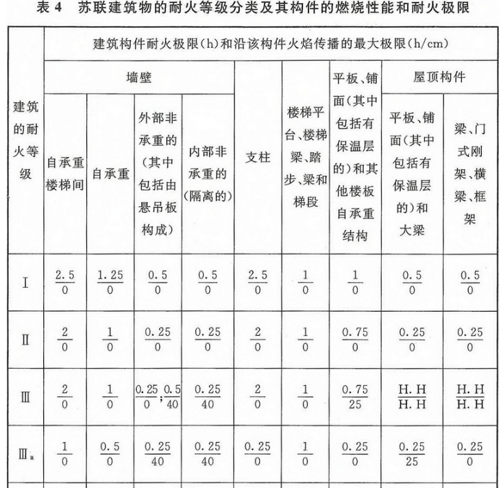(1) 本规范第3.2.1条表3.2.1中有关建筑构件的燃烧性能和耐火极限的确定,参考了苏联、日本、美国等国建筑规范和相关消防标准的规定,详见表4~表6。
