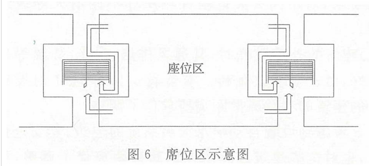 体育馆的疏散设计,要注意将观众厅疏散门的数量与观众席位的连续排数和每排的连续座位数联系起来综合考虑。如图6所示,一个观众席位区,观众通过两侧的2个出口进行疏散,其中共有可供4股人流通行的疏散走道。若规定出观众厅的疏散时间为3.5min,则该席位区最多容纳的观众席位数为4×37×3.5=518(人)。在这种情况下,疏散门的宽度就不应小于2.2m;而观众席位区的连续排数如定为20排,则每一排的连续座位就不宜大于518/20≈26(个)。如果一定要增加连续座位数,就必须相应加大疏散走道和疏散门的宽度。否则,就会违反“来去相等”的设计原则。