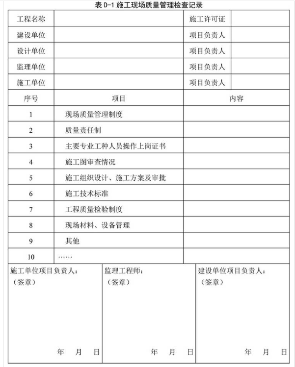 注:施工过程若用到其他表格,则应作为附件一并归档。