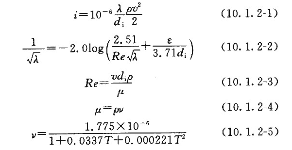 ε——当量粗糙度,可按表10.1.2取值(m);