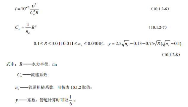 10.1.2 消防给水管道单位长度管道沿程水头损失应根据管材、水力条件等因素选择,可按下列公式计算:
