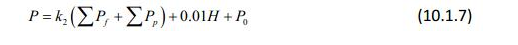 式中:P——消防水泵或消防给水系统所需要的设计扬程或设计压力(MPa);