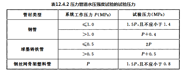 12.4.6 消防给水系统的水源干管、进户管和室内埋地管道应在回填前单独或与系统同时进行水压强度试验和水压严密性试验。