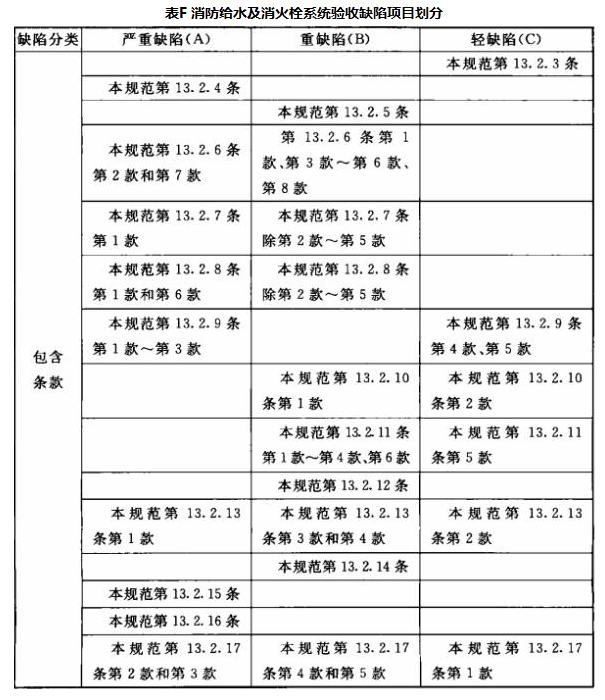 消防给水及消火栓系统验收缺陷项目划分