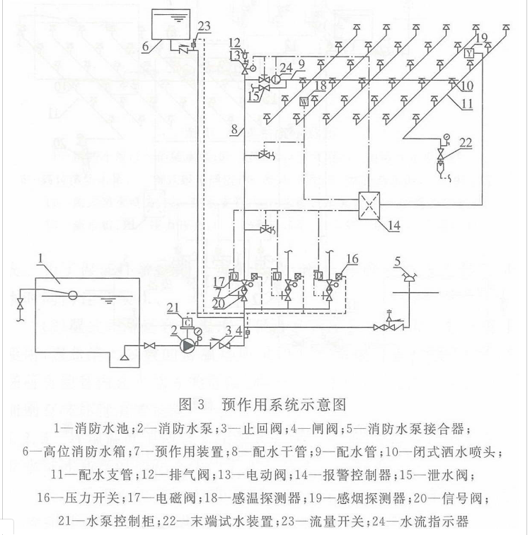 预作用系统即兼有湿式、干式系统的优点,又避免了湿式、干式系统的缺点,在不允许出现误喷或管道漏水的重要场所,可替代湿式系统使用;在低温或高温场所中替代干式系统适用,可避免喷头开启后延迟喷水的缺点。