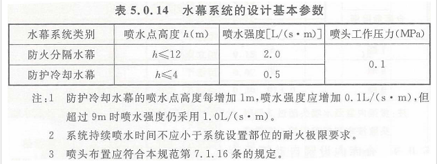 喷头设置高度不超过4m时,喷水强度不应小于0.5L/(s·m);当超过4m时,每增加1m,喷水强度应增加0.1L/(s·m);