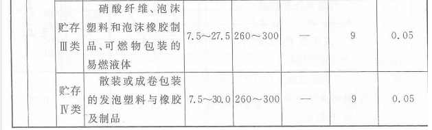 仓库及类似场所采用早期抑制快速响应喷头时,系统的设计基本参数不应低于表5.0.5的规定。