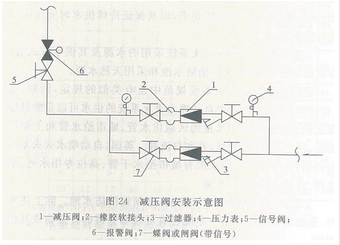 本条提出了系统中设置减压阀的规定。近年来,在设计中采用减压阀作为减压措施的已经较为普遍。本条规定:
