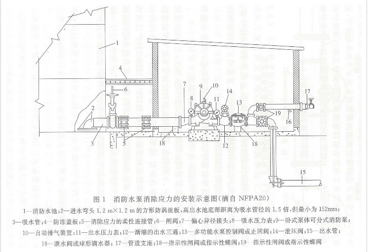 20也明确规定;吸水管应当精心敷设,以免出现漏气和气囊现象,其中任何一种现象均可严重影响消防水泵的运转。