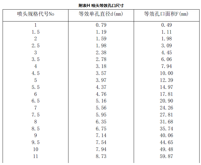注:喷头规格代号系表示具有0.98 流量系数的等效单孔直径与0.79375mm