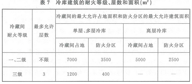 对于冷库,根据现行国家标准《冷库设计规范》GB 50072-2010的规定,每座冷库面积要求见表7。