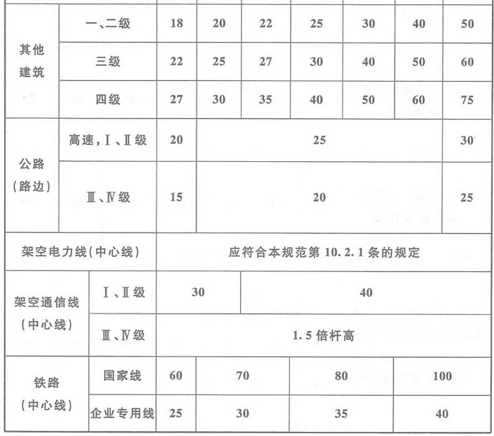 (2)参考了美国消防协会《国家燃气规范》NFPA59-2008规定的非冷冻液化石油气储罐与建筑物的防火间距(见表12)、英国石油学会《液化石油气安全规范》规定的炼油厂及大型企业的压力储罐与其他建筑物的防火间距(见表13)和日本液化石油气设备协会《一般标准》JLPA