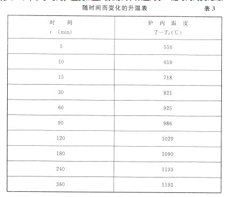 3.当试验进行到10min以后的任何时间内,任何一个测温点的炉内温度与相应时间的标准温度之差不应大于±100℃。