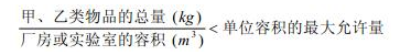 单位容积的最大允许量是非甲、乙类厂房或实验室内使用甲、乙类火灾危险性物品的两个控制指标之一。厂房或实验室内使用甲、乙类火灾危险性物品的总量同其室内容积之比应小于此值。即: