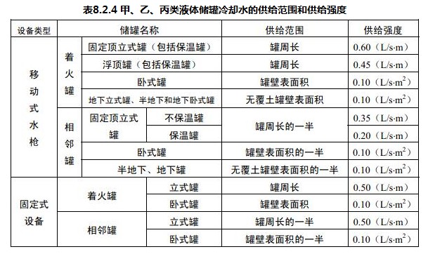 冷却水的供给强度还应根据实地灭火战术所使用的消防设备进行校核;