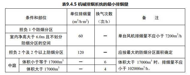 机械排烟系统的排烟量不应小于表9.4.5的规定。