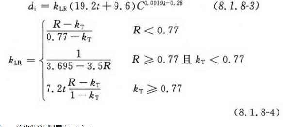 当防火保护层采用非膨胀型钢结构防火涂料时,防火保护层的设计厚度应按下列公式计算: