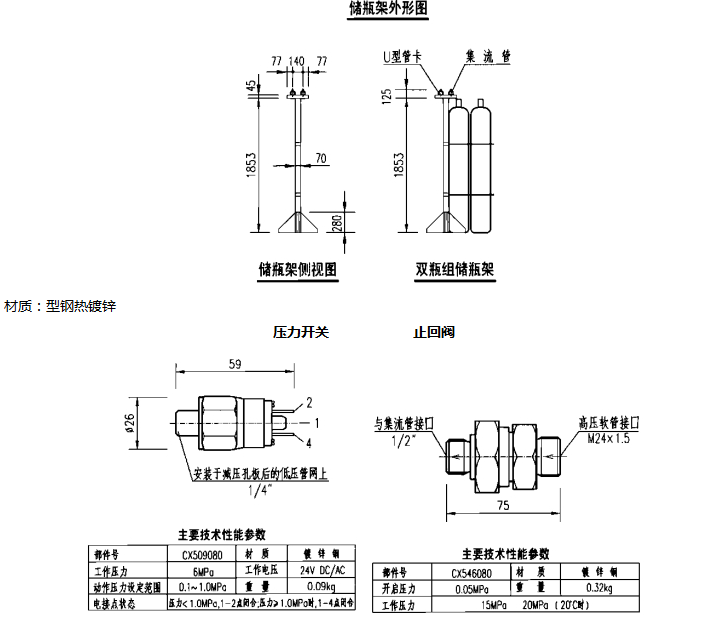 (止回阀、压力开关、喷嘴、储瓶架)
