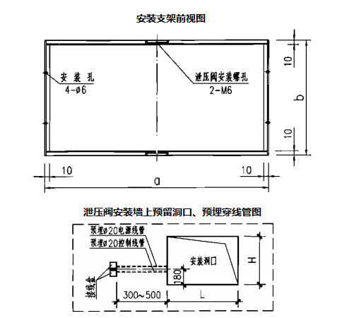注:泄压阀安装支架材质为δ=2冷轧钢板,表面喷塑。