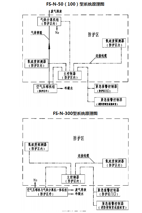 说明:1.空气压缩机组设置位置宜尽量靠近防护区,与防护区距离不应大于50m。
