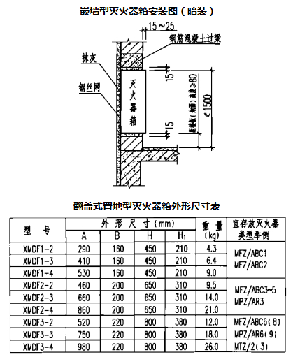 3.暗装在防火墙上的灭火器箱,其箱体后部剩余部分实墙厚度不应小于120mm。