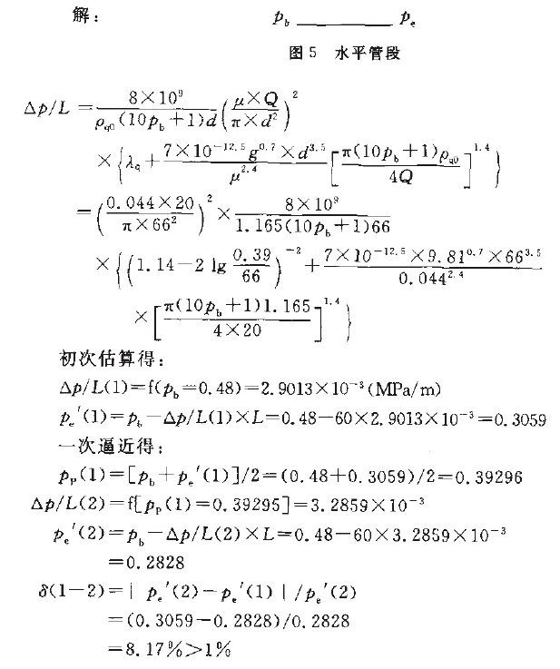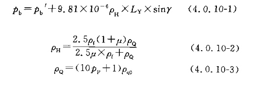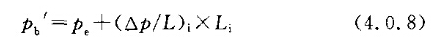 4.0.8~4.0.10 在公式(4.0.7-1)中,取常温下管道中驱动气体密度ρQ的表达式为:ρQ=(10pe十1)ρq0,公式中ρe为计算管段末端压力。按理说应该取高程校正前管段平均压力Pp代替公式(4.0.7-1)中pe计算结果才是△p/L的真值,可那时计算管段首端压力Pb还是未知数,无法求得高程校正前管段平均压力Pp。