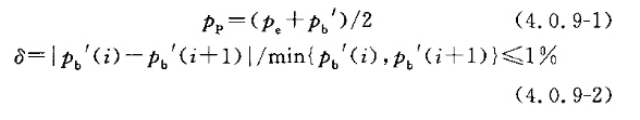 式中:Pb’——高程校正前管段首端压力(MPa)。4.0.9 用管段中的平均压力代替公式4.0.7-1中的管段末端压力,再次求取新的高程校正前的管段首端压力,两次计算结果应满足下列公式要求,否则应继续用新的管段平均压力代替公式4.0.7-1中的管段末端压力,再次演算,直至满足下列公式要求。
