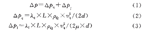 式中:∆p ——管道中的压力损失(Pa);∆pq ——气体流动引起的压力损失(Pa);
