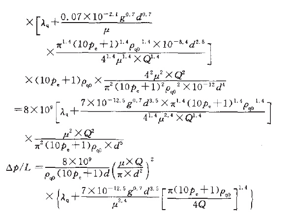 将(∆p/L )以MPa/m作单位,Pe以MPa作单位,d以mm作单位,整理上述各式并化简得: