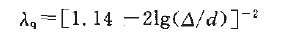 由于气固二相流体在管道中的流速很大,所以沿程阻力损失系数λq按水力粗糙管的情况计算,即: