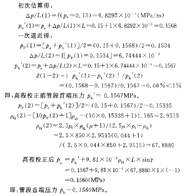 通过公式(4.0.8)已估算出高程校正前管段首端压力,故可估算出高程校正前管段平均压力Pp。