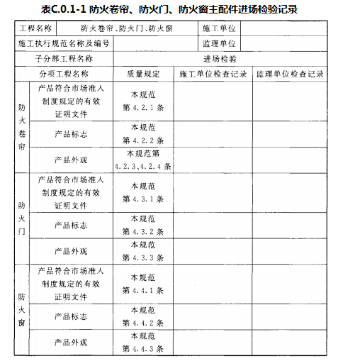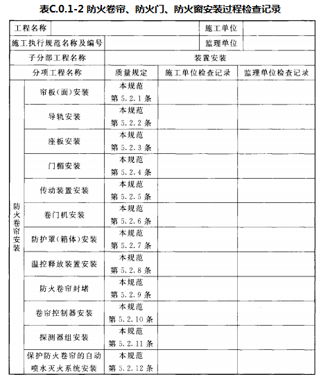 附录C 防火卷帘、防火门、防火窗施工过程检查记录