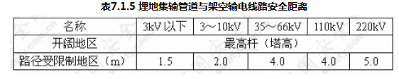7.1.5 集输管道与架空输电线路平行敷设时,安全距离应符合下列要求: